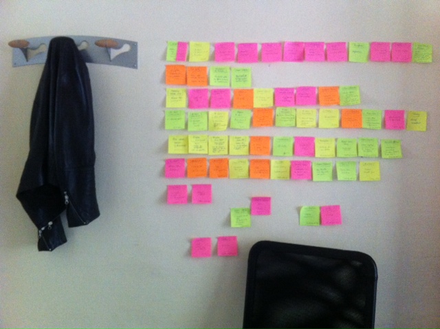 Il y a d’abord une pile de rushes : j’en avais environ 110 heures. Après dérushage, j’ai décidé que nous ne travaillerions qu’à partir de 45 heures, avec Anne Souriau, la monteuse. Tu te fais un mur de post-it, correspondant à des séquences, des personnages et des thèmes, et dans le logiciel de montage, tu organises des « bout-à-bouts » (« Guichet », « Radiation », « Ateliers », « Conflits », etc.). Ces post-it renvoient aussi aux transcriptions des dialogues, 300 pages imprimées recto verso qui gisent sur le bureau de la monteuse et le mien. À partir de là, tu cherches les points d’accroche. Comme chez Lucrèce, dans De Natura Rerum : les atomes crochus. La matière tient parce que les atomes, les particules de matière, ont de tout petits crochets qui leur permettent de tenir entre eux. Tous les atomes ne s’accrochent pas. Tu cherches des rapports d’analogie, des rapports d’illustration, des rapports de développement, des rapports d’opposition, des rapports de contradiction, des rapports d’ironie… Dans le cas précis de ce film, chaque décision a une part d’éthique en plus de la nécessité cinématographique de la narration, du tempo, de l’émotion, de la continuité, etc. Je me dois d’œuvrer avec sincérité et honnêteté vis-à-vis des rushes et de ce que j’ai observé en général à Pôle emploi. Une scène placée après telle scène n’aura jamais le même sens et le même effet qu’avant telle autre ou après une troisième, et souvent une seconde de plus ou de moins au niveau de la coupe change littéralement le sens d’une séquence. C’est ainsi, et c’est difficilement théorisable. C’est souterrain et obscur, parfois jubilatoire aussi.